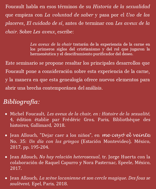 Seminario: ¿Cómo no puede ignorarse Las confesiones de la carne?